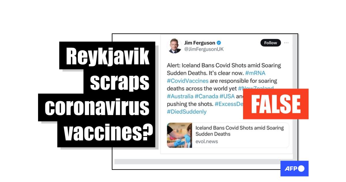 "Alert: Iceland Bans Covid Shots amid Soaring Sudden Deaths. It's clear now," says the text of a November 26, 2023 post on X, formerly known as Twitter, from Jim Ferguson, a one-time candidate for British Parliament with the Brexit Party.