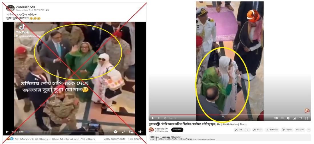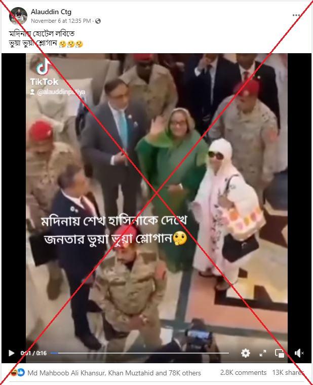 The video surfaced following Hasina's trip to Medina, a Saudi city home to the Prophet Mohammed's tomb (archived link).