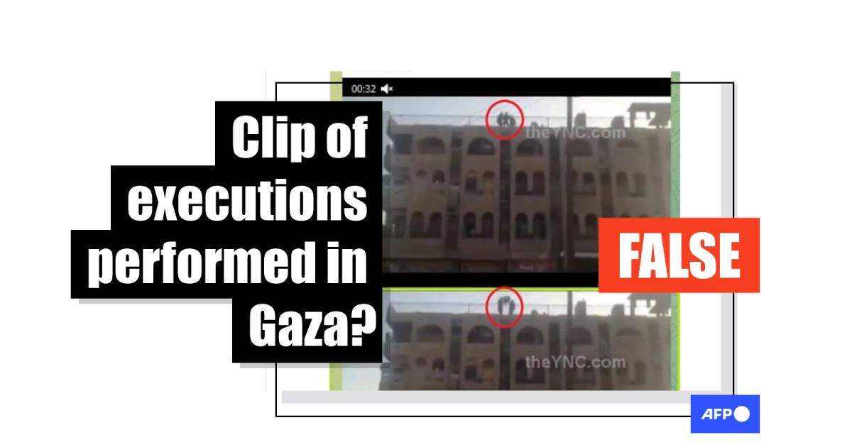 The grainy video appears to show people pushing others off a roof four stories above the ground. Similar versions of the video with the claim that it showed executions performed by Hamas militants were posted on X and spread to Facebook, where screenshots in some posts indicated the claim had also proliferated widely on Telegram.
