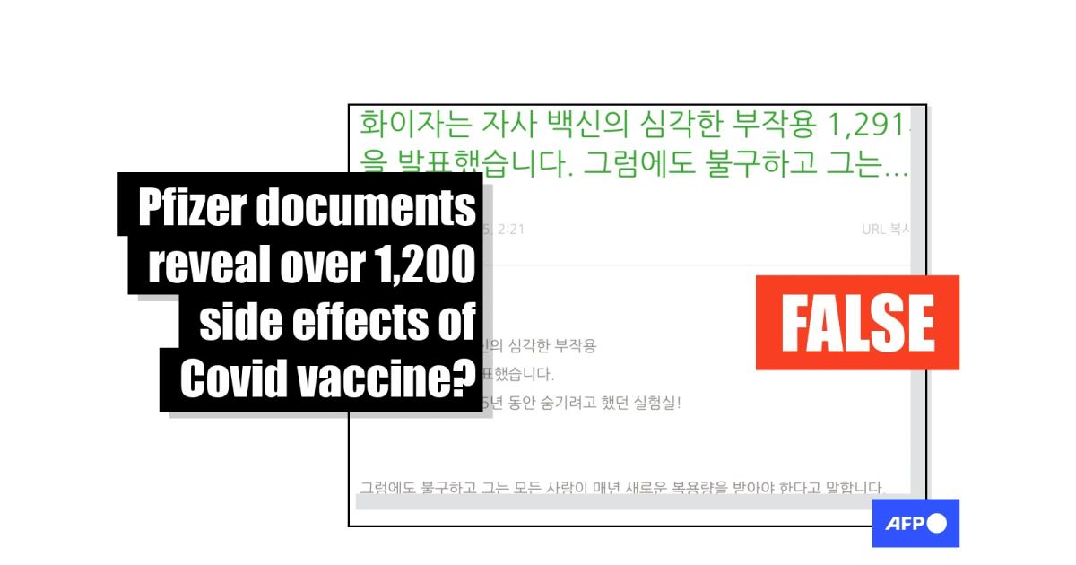 "Pfizer has released a list of serious side effects totalling 1,291 for its vaccine. The company had attempted to hide this information for at least 75 years in its laboratory!" reads part of a Naver Blog post written in Korean shared on December 5, 2023.