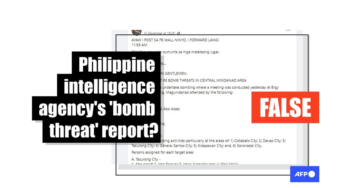 False 'intel report' about bomb threats to southern Philippine cities resurfaces on social media