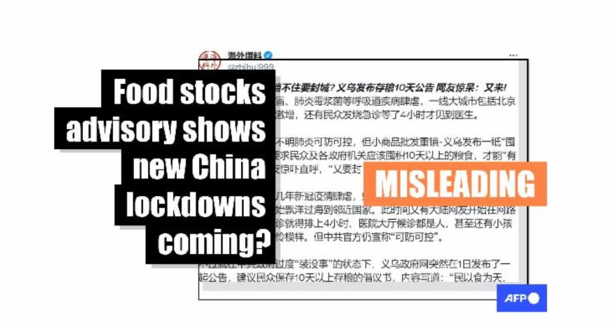 Food stocks advisory in eastern China misleadingly cited as evidence new lockdown imminent