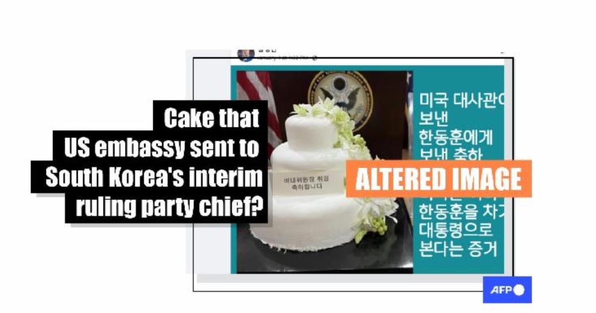Altered cake photo falsely shared as 'US embassy gift to South Korea's ruling party interim chief'