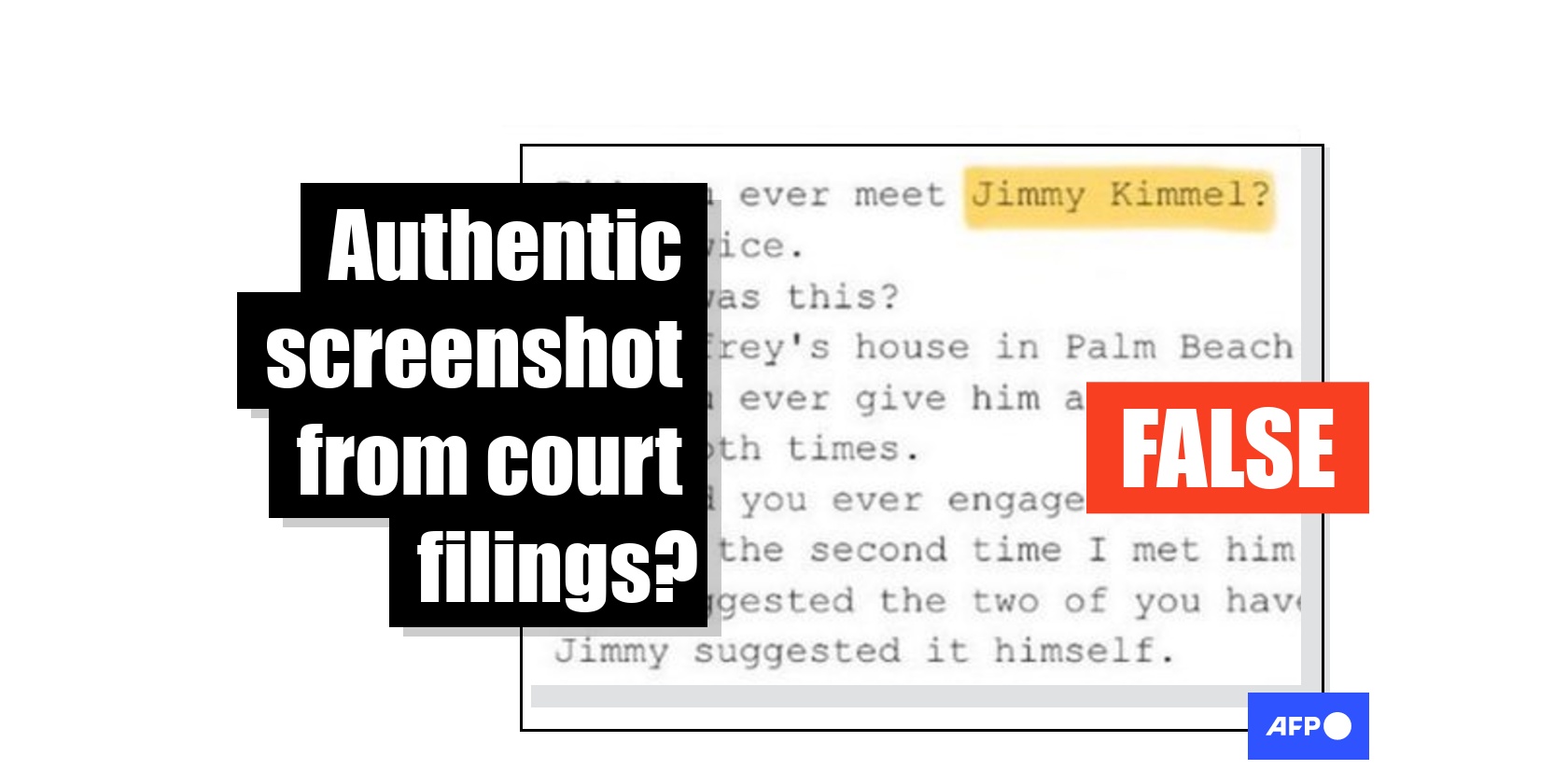 Fake screenshot names Jimmy Kimmel in Jeffrey Epstein documents