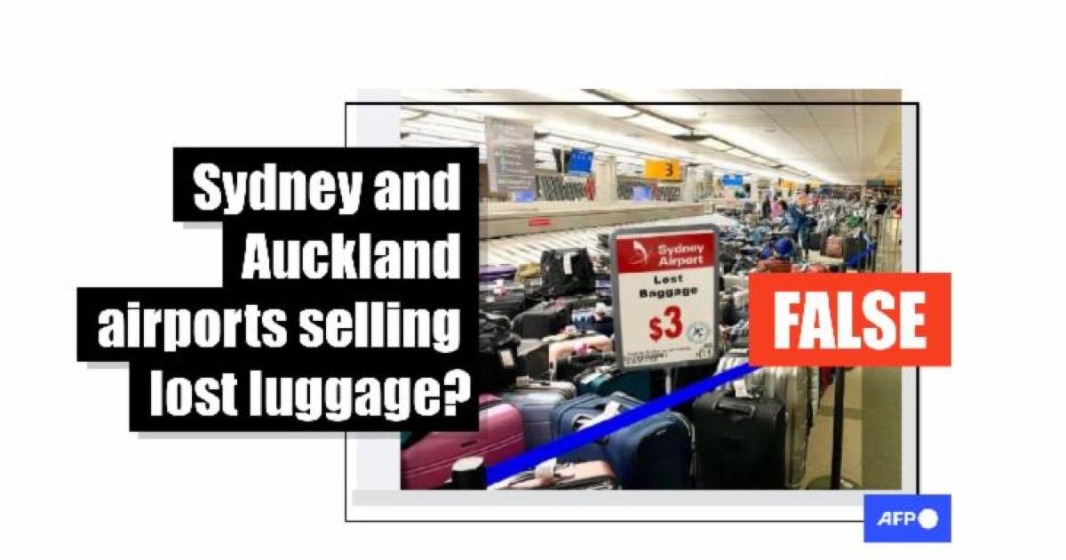 Similar posts were shared elsewhere on Facebook here and here, while posts claiming Auckland Airport in New Zealand was selling lost luggage were shared here and here.
