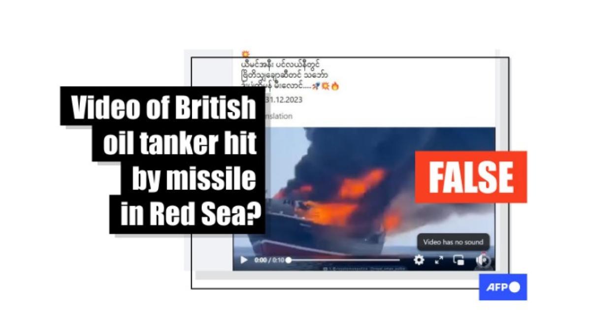 "A British oil tanker was hit by a missile in the Red Sea near Yemen," reads the Burmese-language Facebook post shared on December 31, 2023.