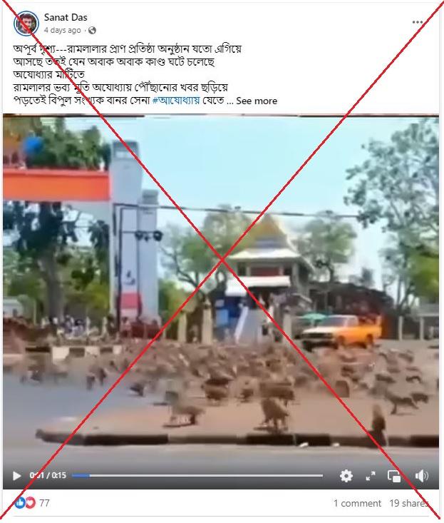 "As the news of Ramlala's Idol reaching Ayodhya starts to break out, a large number of monkey armies have been seen heading towards Ayodhya," reads the Bengali-language caption of a Facebook post shared on January 20, 2024.