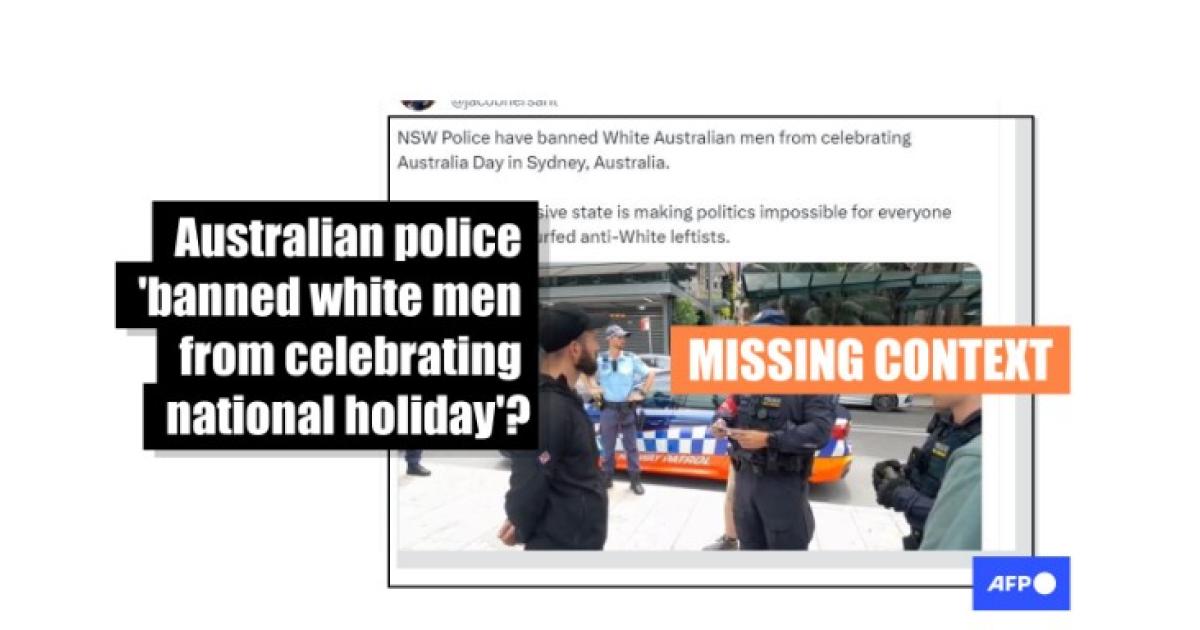 "NSW Police have banned White Australian Men from celebrating Australia Day in Sydney, Australia," reads a post shared on social media platform X here on January 26, 2024.