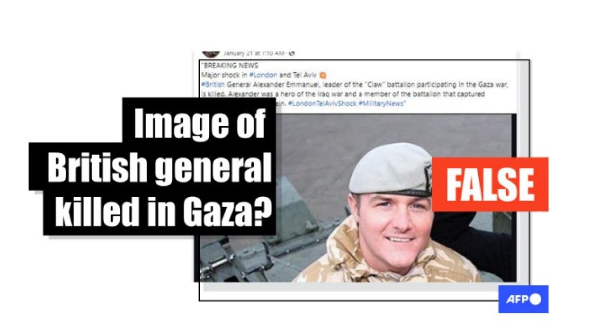 But the posts claiming to show a British general named Alexander Emmanuel allegedly killed in Gaza are false.