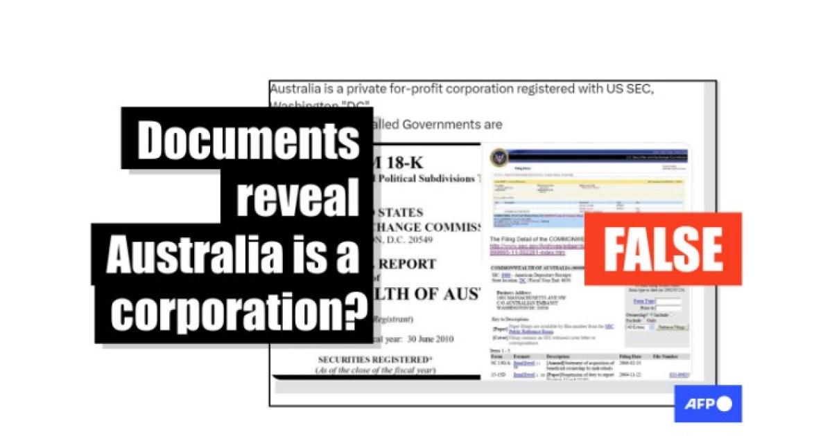 "Australia is a private for-profit corporation registered with US SEC," reads another post on X from August 10, 2023, suggesting other commission filings are evidence that support the false claim, which has circulated on social media for years.