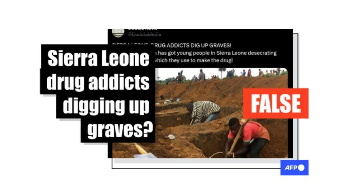 “SIERRA LEONE: DRUG ADDICTS DIG UP GRAVES! A drug called Kush has got young people in Sierra Leone desecrating graves for bones which they use to make the drug,” reads a post shared more than 110 times on X since January 8, 2024.