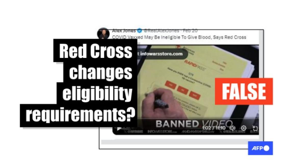 "The FDA requires varying wait times to donate blood depending on the vaccine. This includes wait times that can vary from two to four weeks for a number of vaccines including but not limited to measles, mumps and rubella, chicken pox, shingles, polio, yellow fever, hepatitis B, and others," the nonprofit humanitarian group told AFP in a February 21, 2024 email.