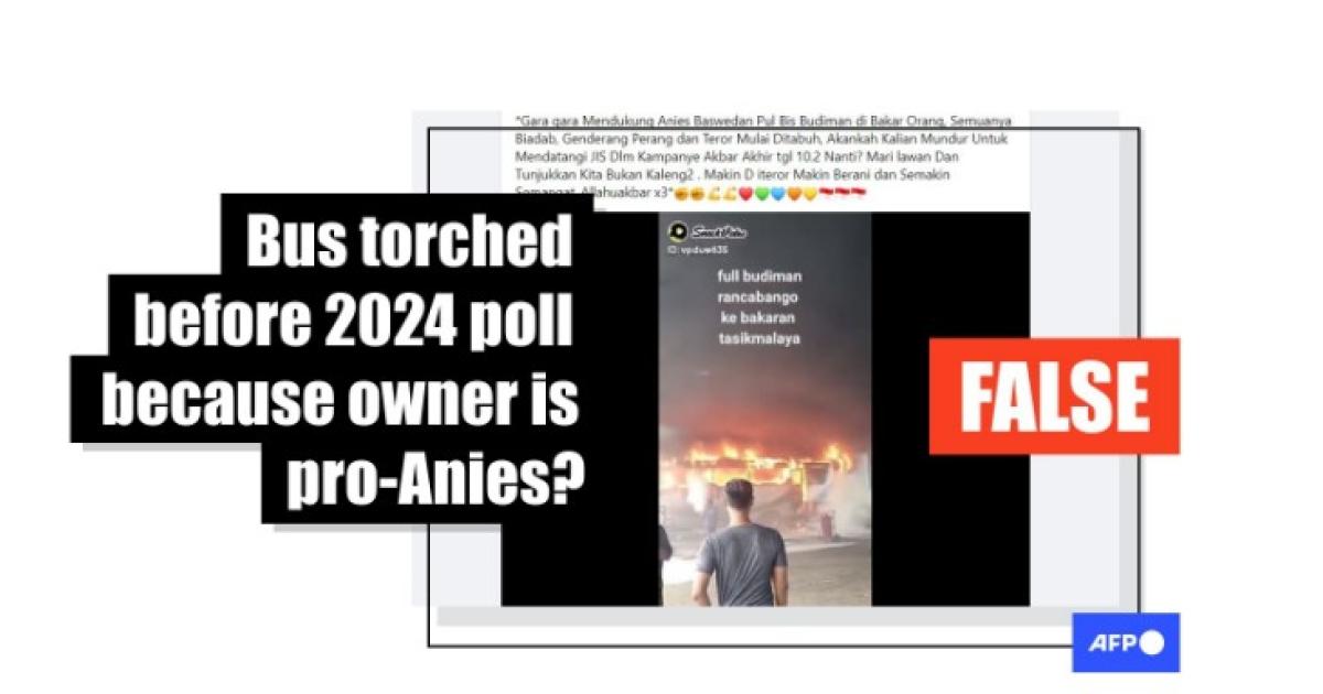 Old video of Indonesia bus fire falsely shared as election arson attack
