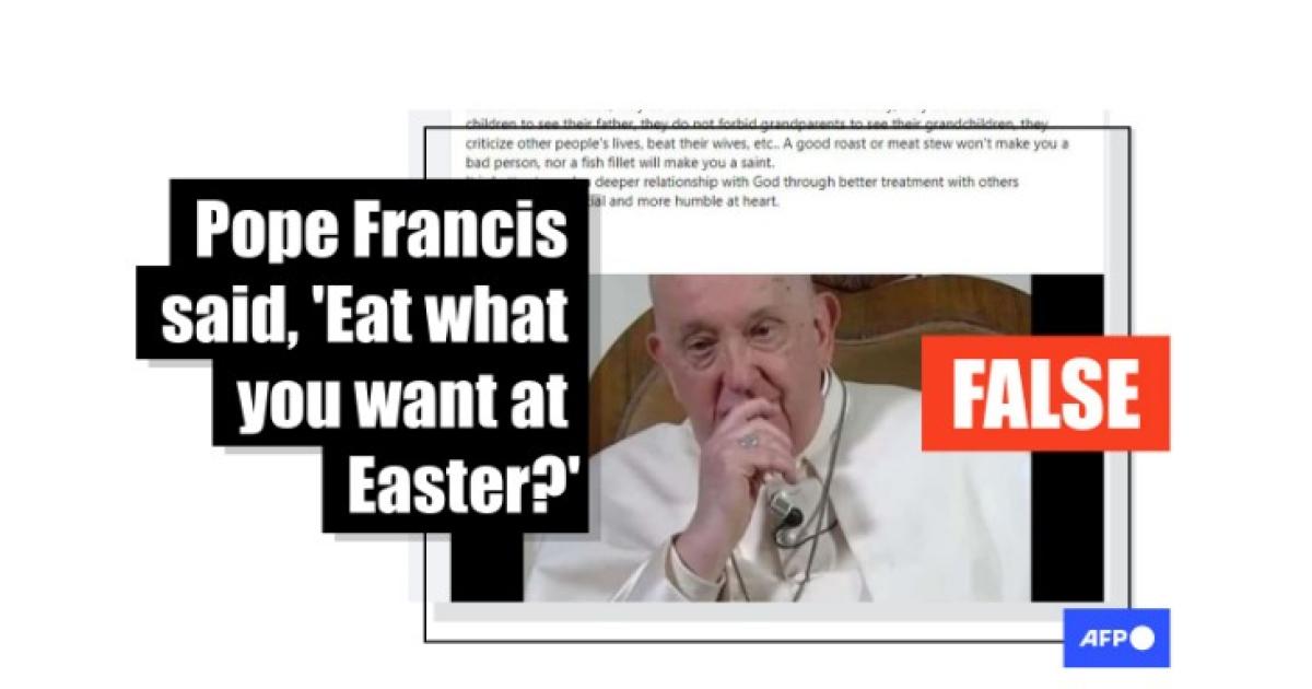 No record Pope Francis told Catholics to 'eat what you want' in run-up to Easter