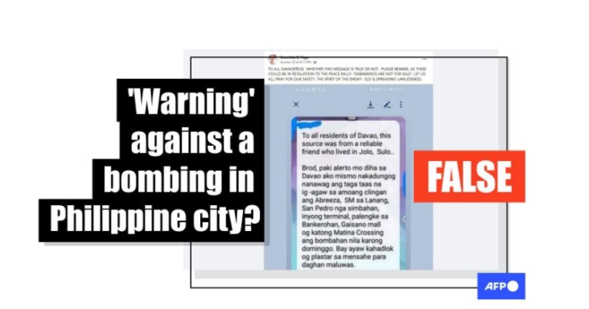 Hoax bombing warnings in the southern Philippines repeatedly circulate on social media and have been debunked by AFP previously.