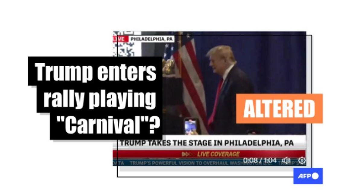 "Donald Trump walking out to CARNIVAL at Philly," says a February 18, 2024 post on X, formerly Twitter.