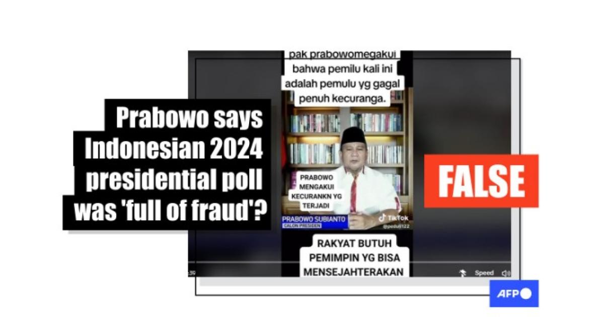"Prabowo admits that this election was a failed election and full of fraud," reads Indonesian-language text overlaid on a TikTok video posted on February 21, 2024.