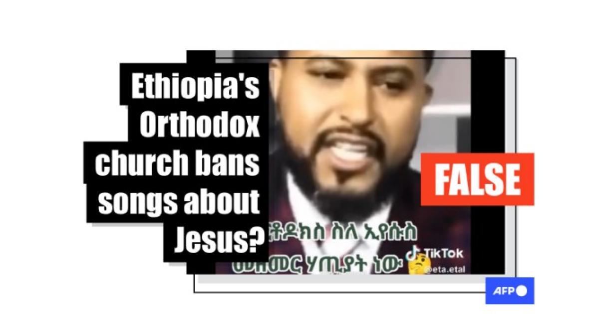 A TikTok video that resurfaced on Facebook recently claimed in a headline that the Ethiopian Orthodox Tewahedo Church had banned songs about Jesus. The clip used footage of former church singer Tizitaw Samuel responding to criticism about a popular gospel song. The claim, however, is false; while Tizitaw spoke about content considered non-Orthodox by members of the church, he did not say songs about Jesus were banned. The Orthodox church told AFP Fact Check that worship of Jesus remains a foundation of their faith.