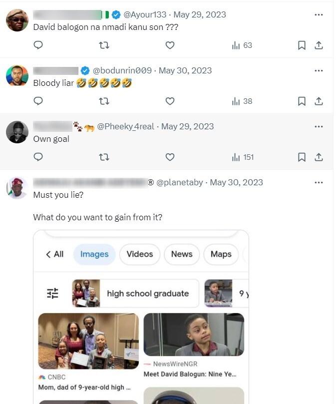 An X account called “Emeka Oragwu” shared the same photos with a variant of the claim, alleging that Kanu’s son emerged as the “world’s smartest kid at age 7” and “received $500k from the US government” in an unnamed competition.