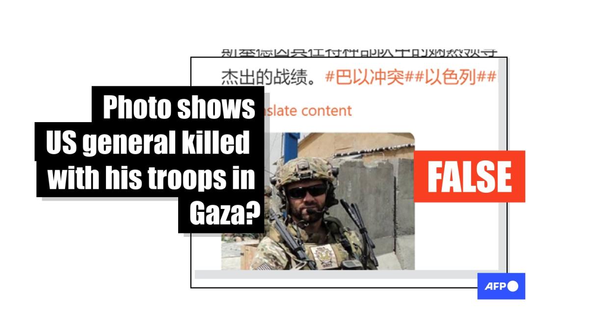 A man pictured in social media posts worldwide that falsely identified him as a United States military commander "killed in an ambush by Hamas" with "his unit of joint Israeli-US forces" during the war in Gaza has told AFP that he has "never been" to the besieged Palestinian territory. Ryan Brummond said his photo was taken in Afghanistan in 2013 when he served as a US special forces officer. On March 5, 2024, the US Pentagon said there were "no plans" to deploy American troops to war-torn Gaza.