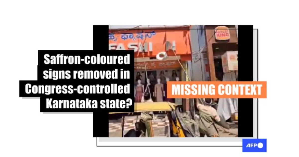 Manjunath Rao, the owner of the shop with the saffron-coloured sign in the video, told AFP his sign was removed for not adhering to the local government's order.