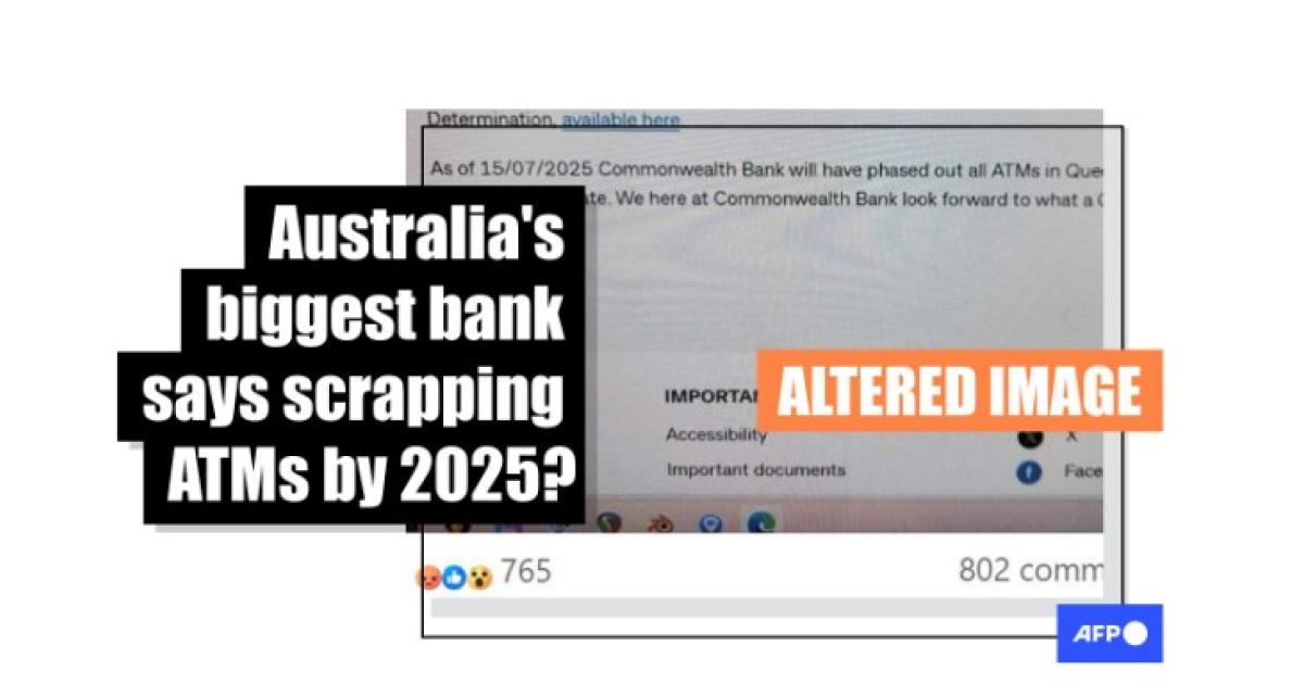 While local media reported in February 2024 that CBA had removed more than half its ATMs in the past five years, a representative from the bank said the screenshot circulating on Facebook was "fake" (archived link).