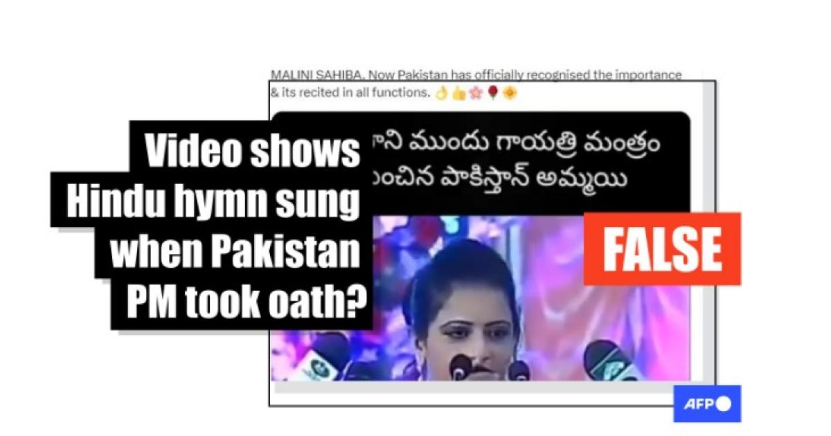 The post falsely claimed a singer named Narodha Malni performed the "Gayatri mantra" Hindu hymn during the event. It said: "Pakistan prime minister's swearing in ceremony starting with 'Gayatri maha mantra' by smt. Naroda Malini Sahiba. Now Pakistan has officially recognised the importance & its recited in all functions."