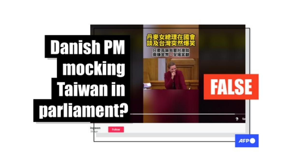 Traditional Chinese subtitles on the video claim Danish Prime Minister Mette Frederiksen told parliament that Taiwan is a "very good country" and "very rich".