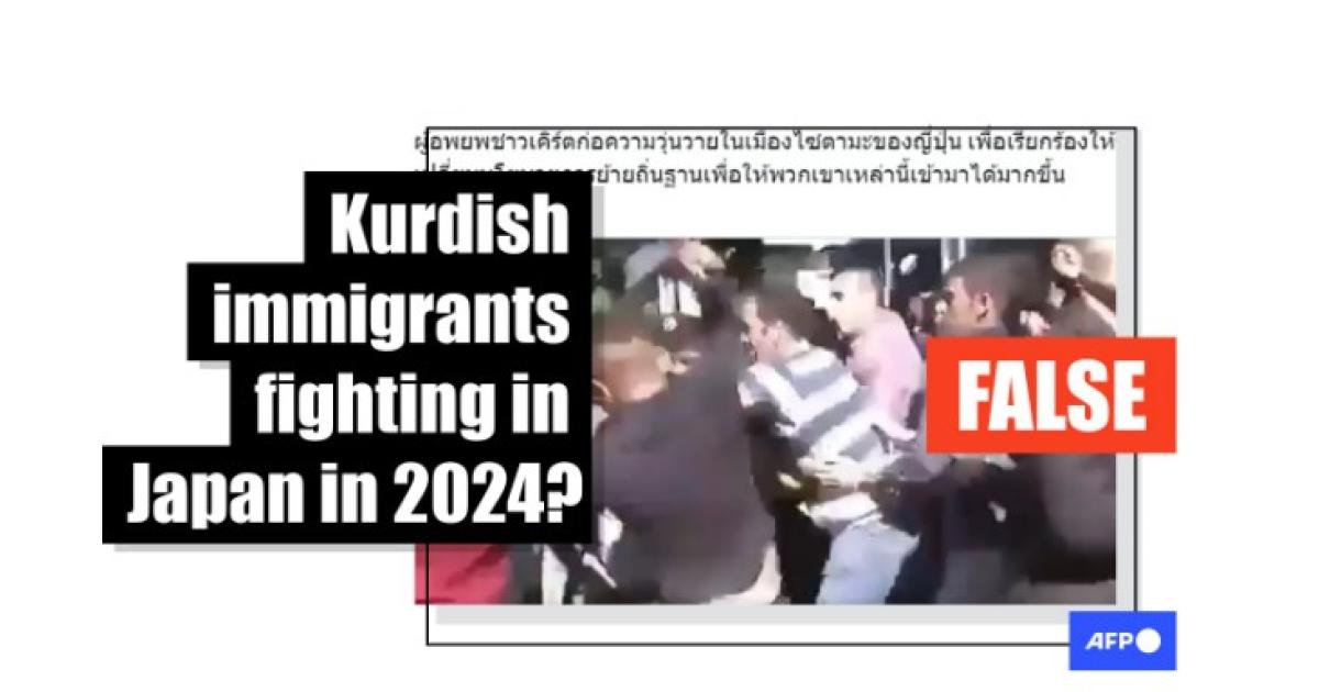 "Kurdish immigrants causing mayhem in Saitama, Japan," reads part of the Thai-language caption of a video shared on social media platform X on February 21, 2024.