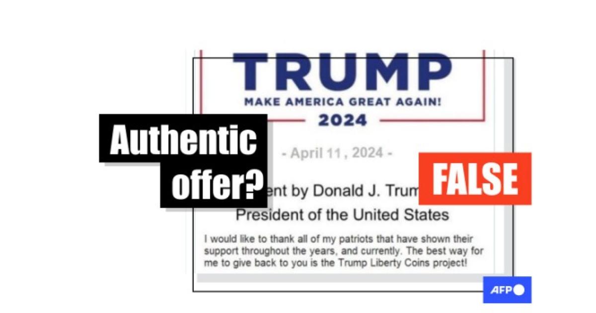 But the purported statement announcing the sale of "Trump Liberty Coins" is fabricated.