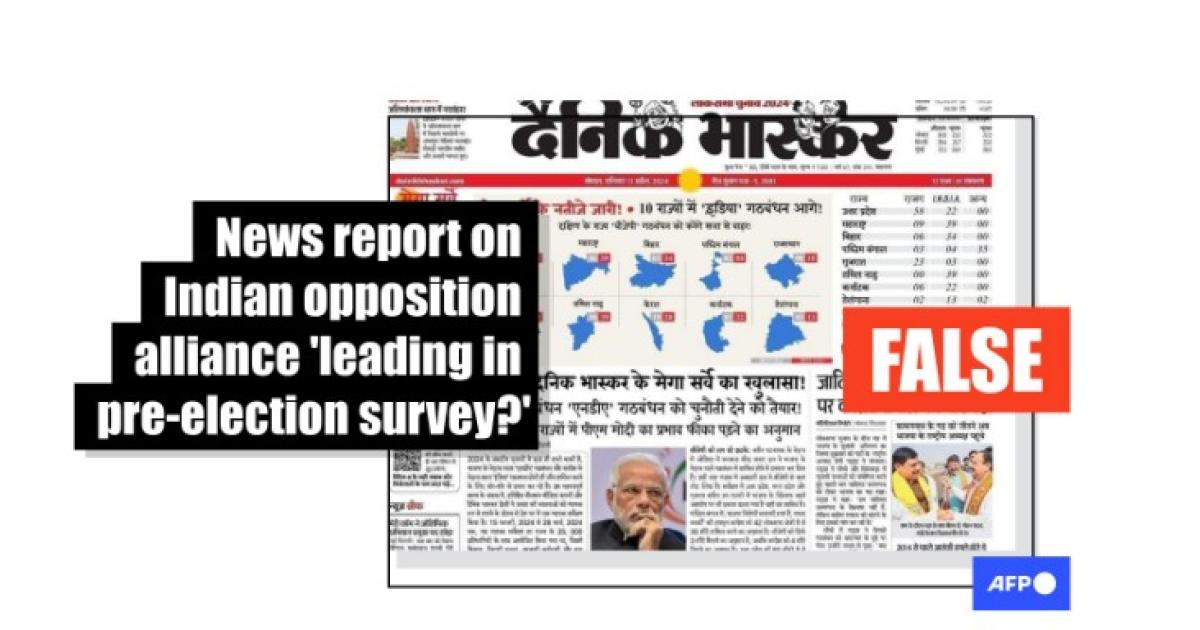It appeared to show the front page of major Hindi-language newspaper Dainik Bhaskar reporting on the result of an election survey.