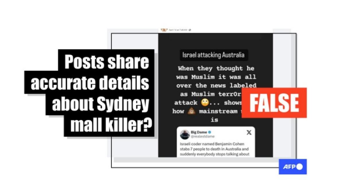"Israeli coder named Benjamin Cohen stabs 7 people to death in Australia and suddenly everyone stops talking about it," reads a screenshot of a post from the day of the incident shared on Facebook on April 14.