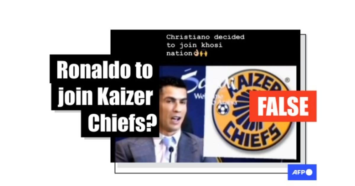 Additional text at the bottom right of the clip claims: “Ronaldo joining kaizer chiefs (sic)”.