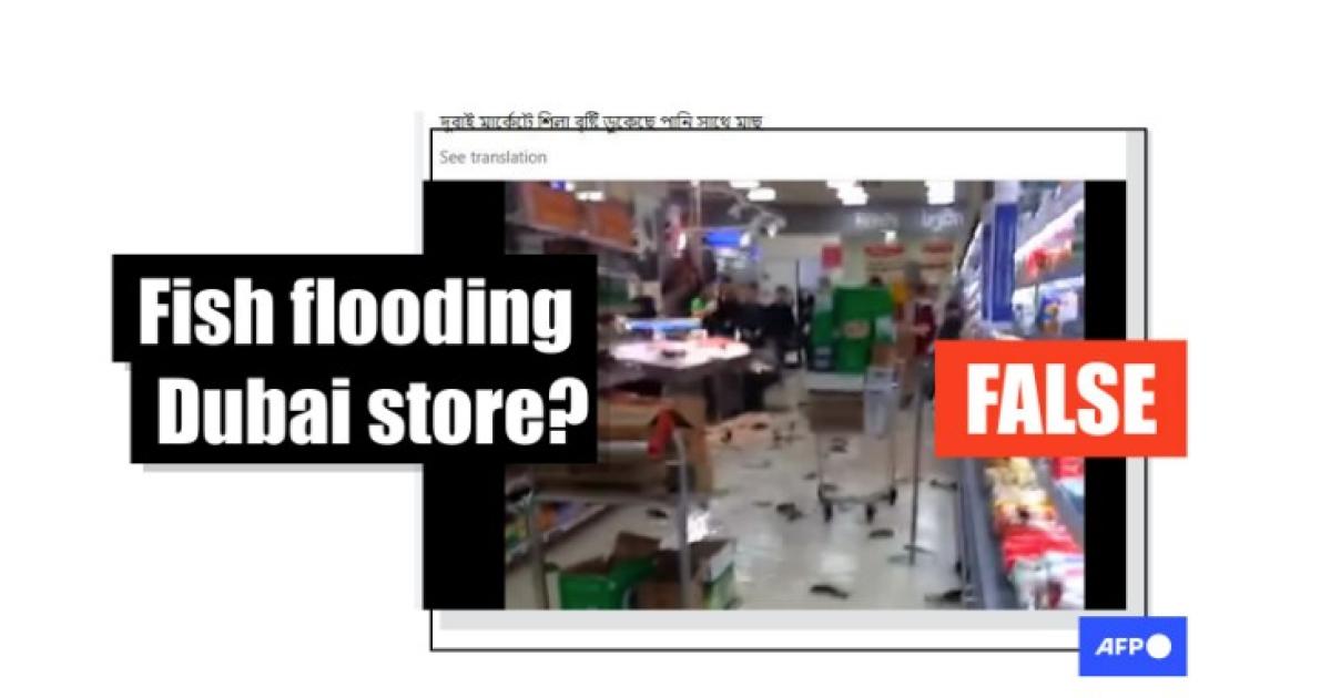 "Hailstorm in Dubai flooded the market with water and fish," read a Facebook post written in Bengali that shared the footage on April 18, 2024.