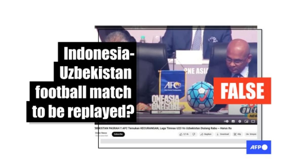 "UZBEKISTAN SURRENDERS!! AFC Found FRAUD, U23 National Team vs Uzbekistan will be replayed on Wednesday -- It is a Must," read the Indonesian-language title of a video that racked up more than 2.7 million views after it was shared on YouTube on April 30.