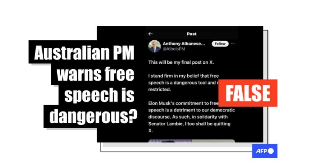 Parody post misrepresented as Australian PM 'warning' on free speech