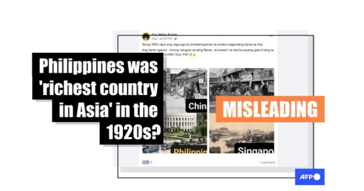 Historical economic data shows Philippines was not 'richest Asian nation' in the 1920s