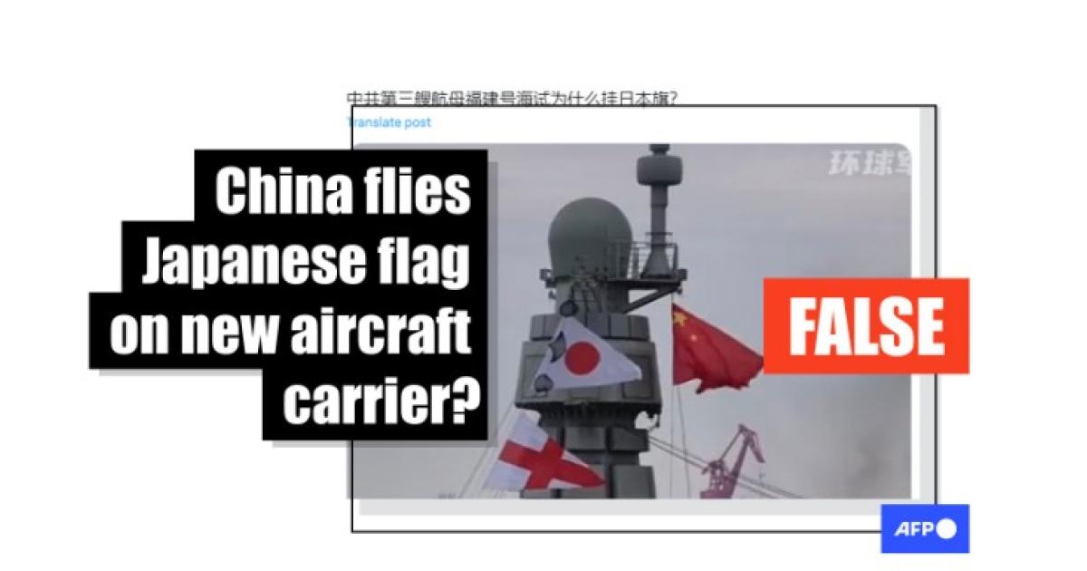 "Why is the Chinese Communist Party flying the Japanese flag on its third aircraft carrier, the Fujian, during sea trials?" read the simplified Chinese caption of an X post on May 4, 2024.