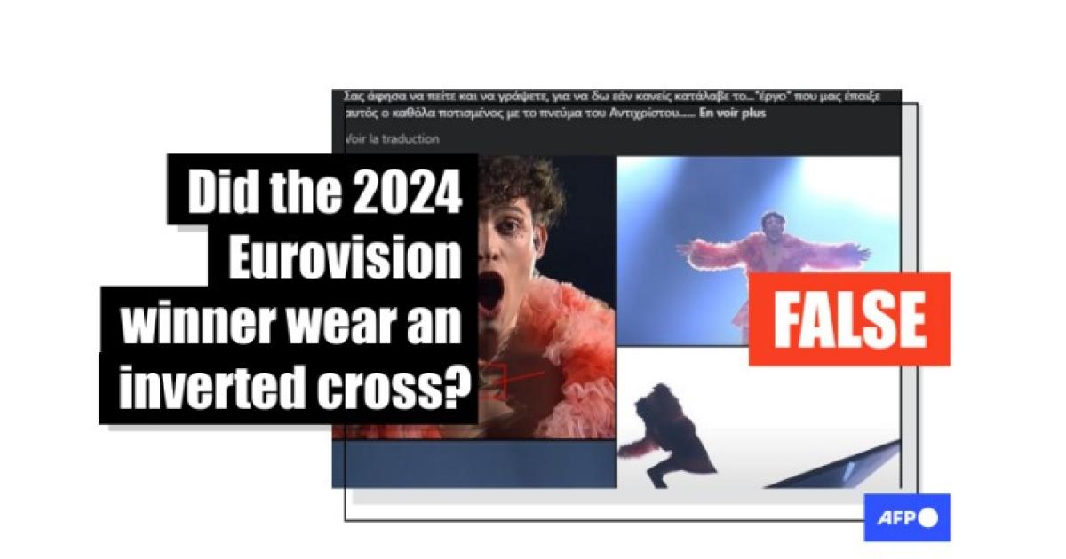 The leader of the far-right Elliniki Lysi (EL) party, Kyriakos Velopoulos, also slammed Nemo for wearing "an inverted cross" in a post on X. "When EL comes to power, no more Eurovision", he wrote. AFP has already debunked his claims about the LGBTQ community here.