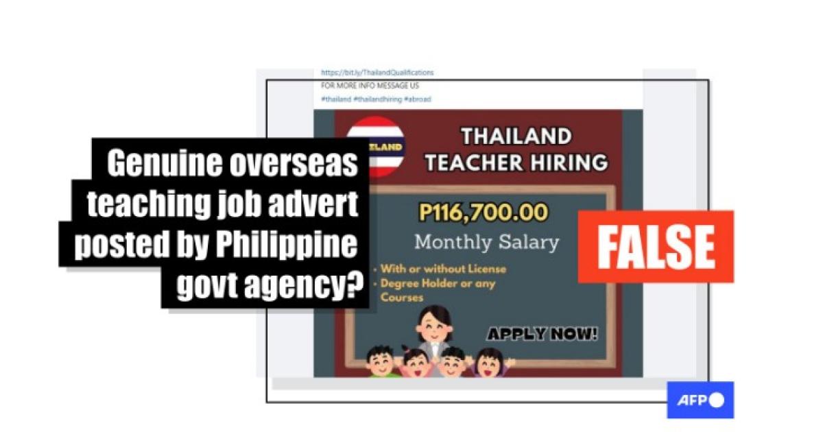It included a graphic that said holders of any degree -- even those without teaching licences -- can apply for the job which purportedly paid 116,700 pesos monthly.