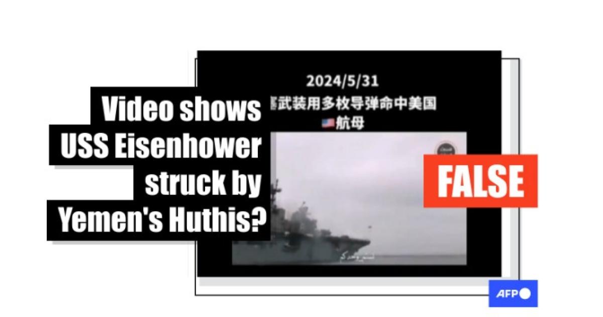 The video circulated shortly after Yemen's Huthi rebels claimed that they had launched a missile attack on the US aircraft carrier the USS Dwight D. Eisenhower in the Red Sea on May 31, 2024. Washington has not confirmed the aircraft carrier was targeted.