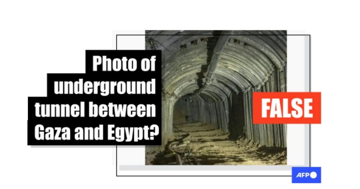 But the photo purportedly showing a Hamas tunnel between southern Gaza and Egypt in fact shows an underground passage near a border crossing about 40 kilometres (25 miles) to the north.
