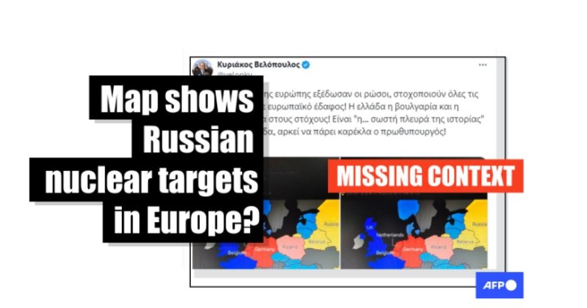 Days later, the map falsely claiming to show Russia's nuclear targets in Europe began circulating on Greek social media and websites. It was carried by Pronews.gr -- a site that AFP has already found has shared misinformation(here, here and here) -- with the headline: “Russia: published a map of nuclear targets in Europe -- Greece on the list".