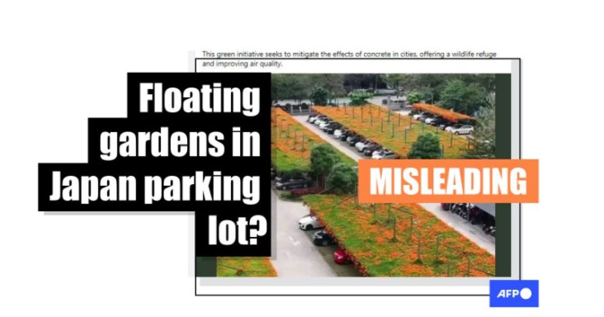However, the photo shows a parking lot in China. While urban planning specialists said that Japan had created various green spaces in cities, AFP found no reports of widespread installations of floating gardens in parking lots.