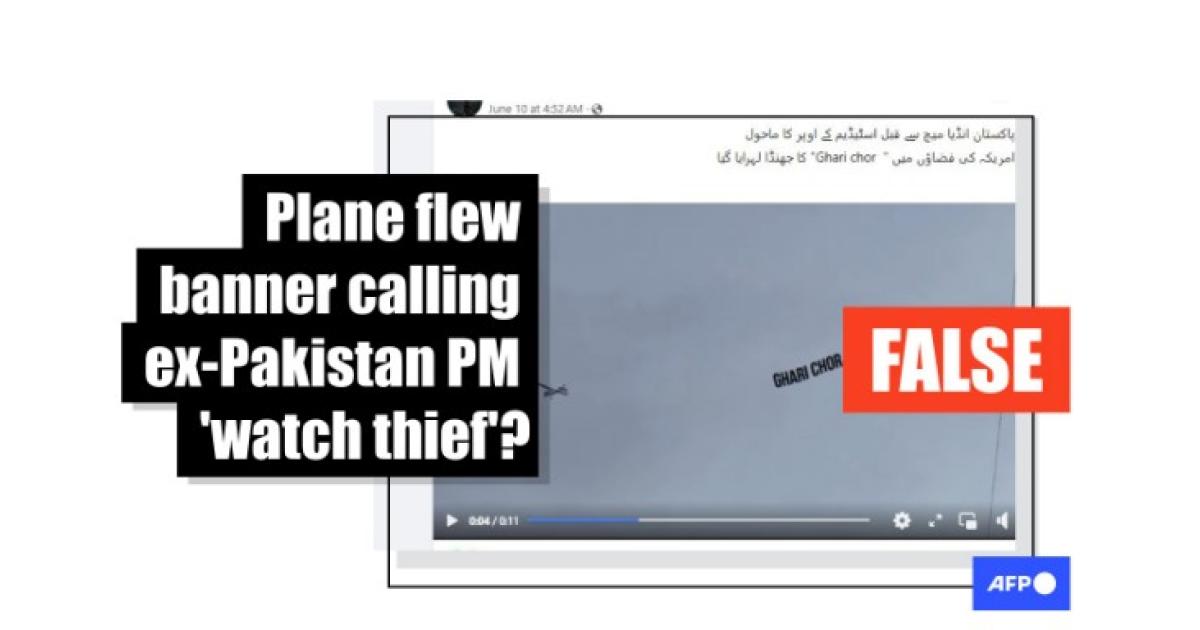 It showed a video, viewed more than 218,000 times, appearing to show a plane flying a banner that said "ghari chor" -- "watch thief" in English.