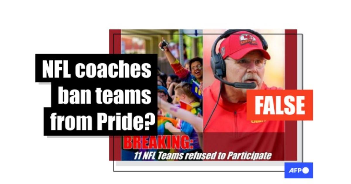 Another widely shared Facebook post using an image of the Super Bowl-winning coach Andy Reid says: "Breaking: NFL Team Kansas City Chiefs Refuses To Participate In Pride Month, 'It's Extremely Woke.'"