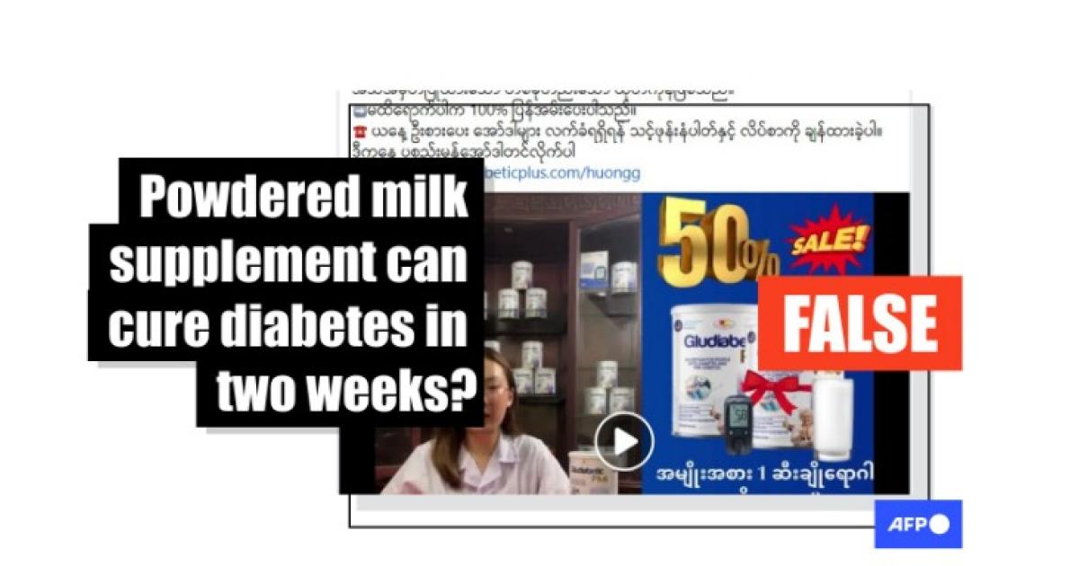 A Burmese-language advertisement for a powdered milk product named "Gludiabetic Plus" racked up more than 450,000 views since it was shared on Facebook on February 22, 2024.