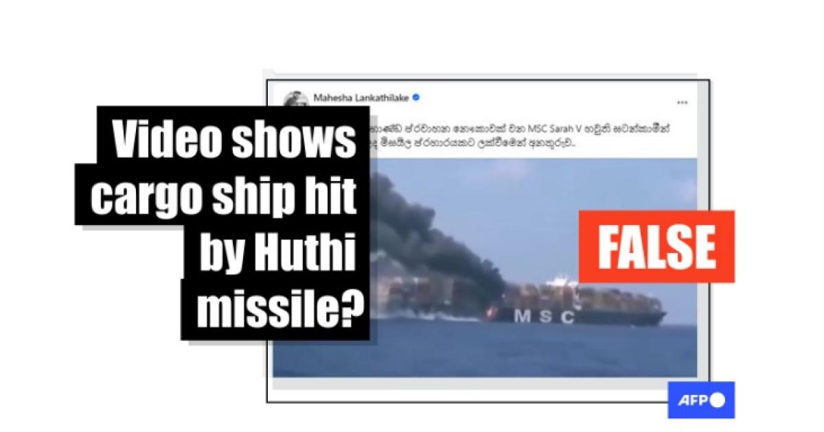 "Israeli cargo ship MSC Sarah V after a missile attack by Huthi fighters," reads a Sinhala-language Facebook post that shared the video on June 27.