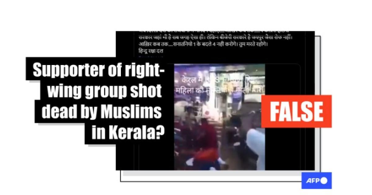 Referring to the right-wing Hindu nationalist organisation Rashtriya Swayamsevak Sangh (RSS) and its political wing, the Bharatiya Janata Party (BJP), the clip's Hindi-language caption read, "In Kerala, an RSS-supporting woman was pulled out of her car and shot by Muslims in the middle of the market" (archived link).
