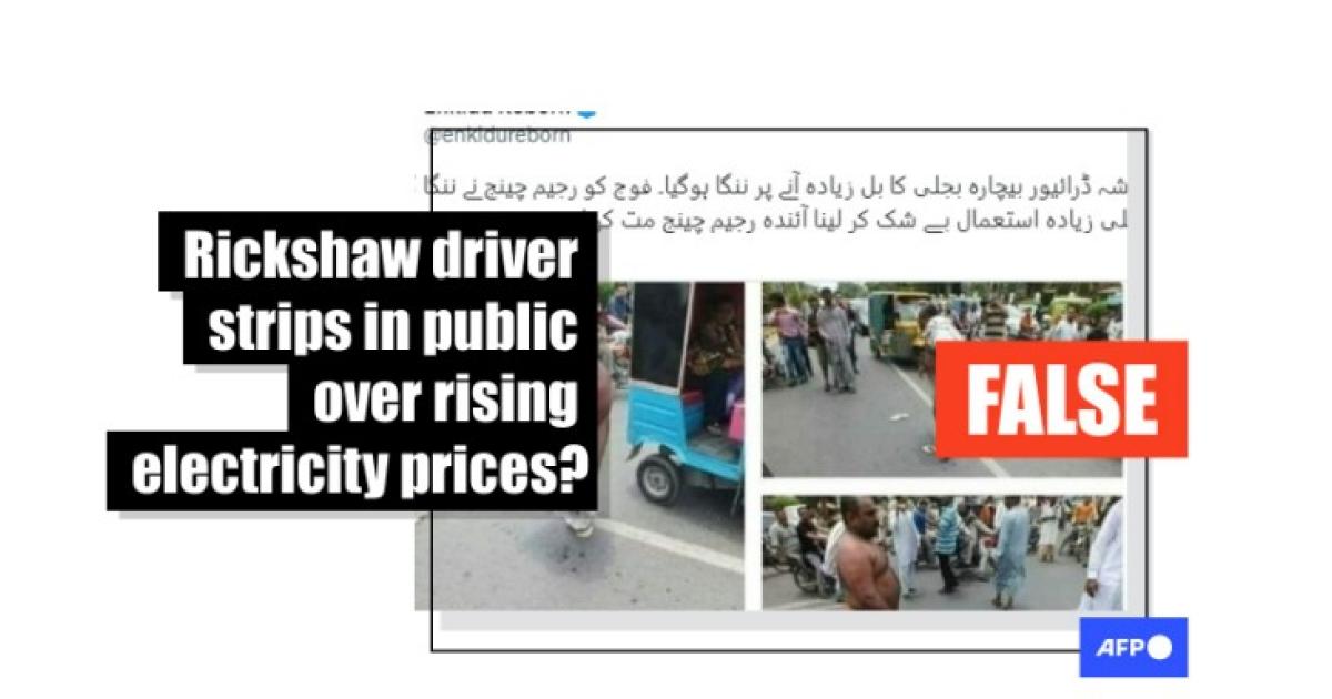"The poor rickshaw driver stripped in public when he got an inflated electricity bill," read part of the Urdu-language caption to photos shared on X on July 4, 2024.